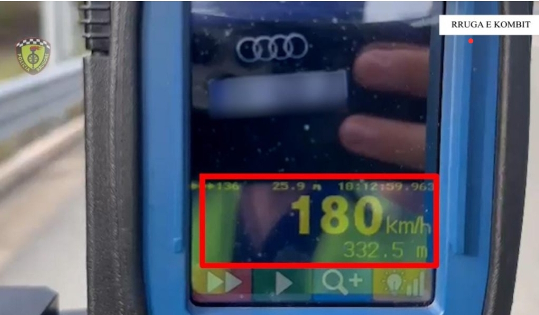 Një shofer është kapur duke drejtuar mjetin e tij me 180 km/h në Rrugën e Kombit, ku shpejtësia e lejuar është 100 km/h.