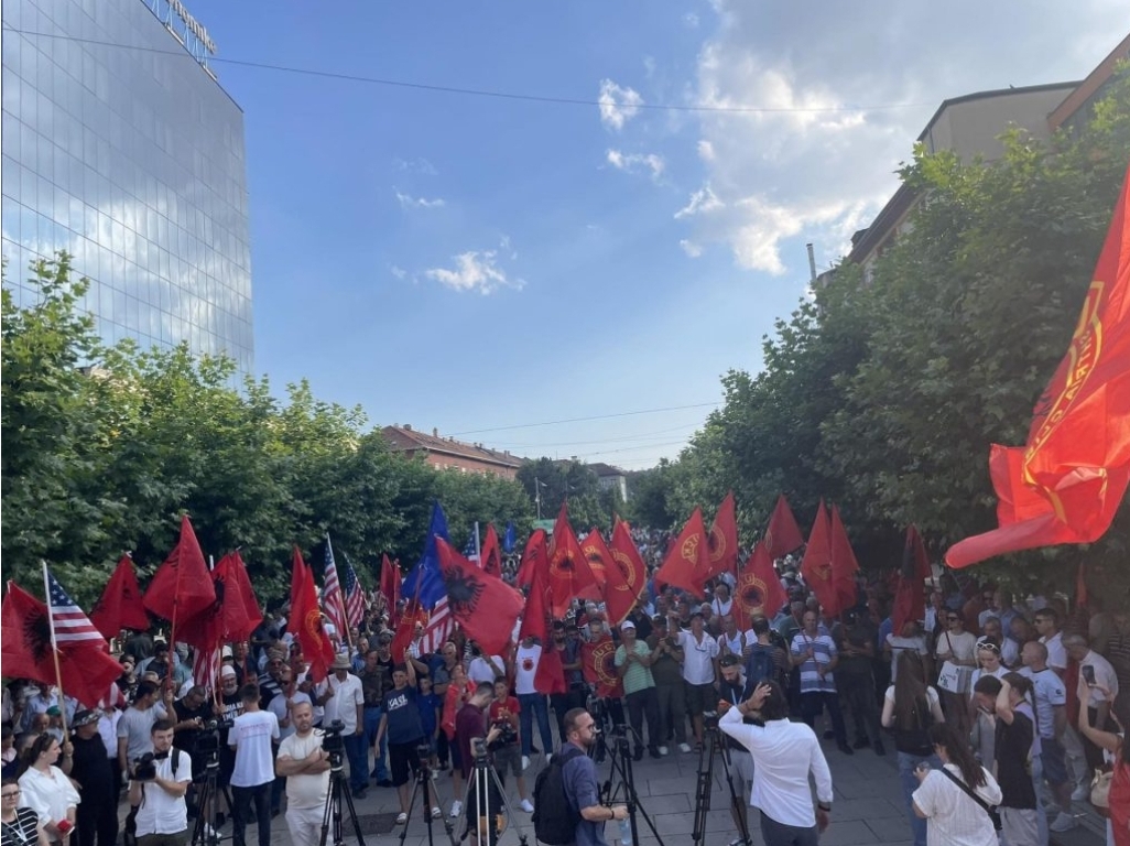 Situata aktualisht është e qetë, ku po mbizotërojnë flamujt kuq e zi dhe këngët patriotike shqiptare. Arsyeja e thirrjes së protestës, është për arsye të kundërshtimit të miratimit të Ligjit të Pagave, të enjten në Kuvendin e Kosoës, që i lë ata jashtë, rritjes.