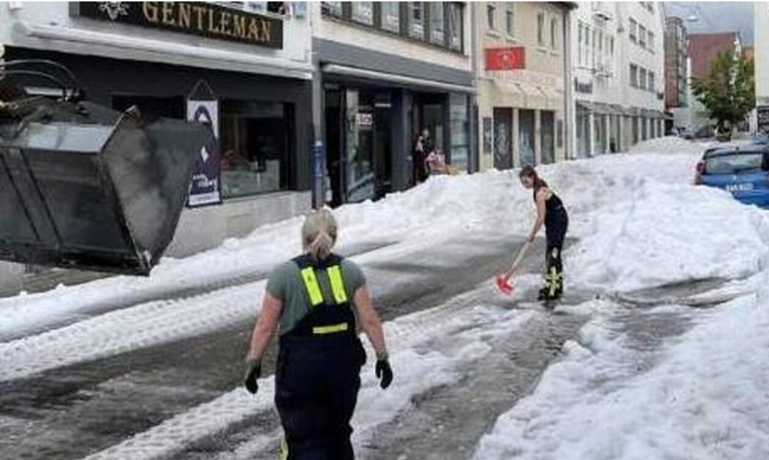 Makinat e borës dolën në rrugët e Gjermanisë jugperëndimore në mes të verës, pasi një stuhi e fortë la pas sasi të mëdha breshëri. Autoritetet në Reutlingen në shtetin e Baden-Württemberg thanë se një “stuhi lokale me breshër dhe shi të dendur” përfshiu qendrën e qytetit të premten pasdite.