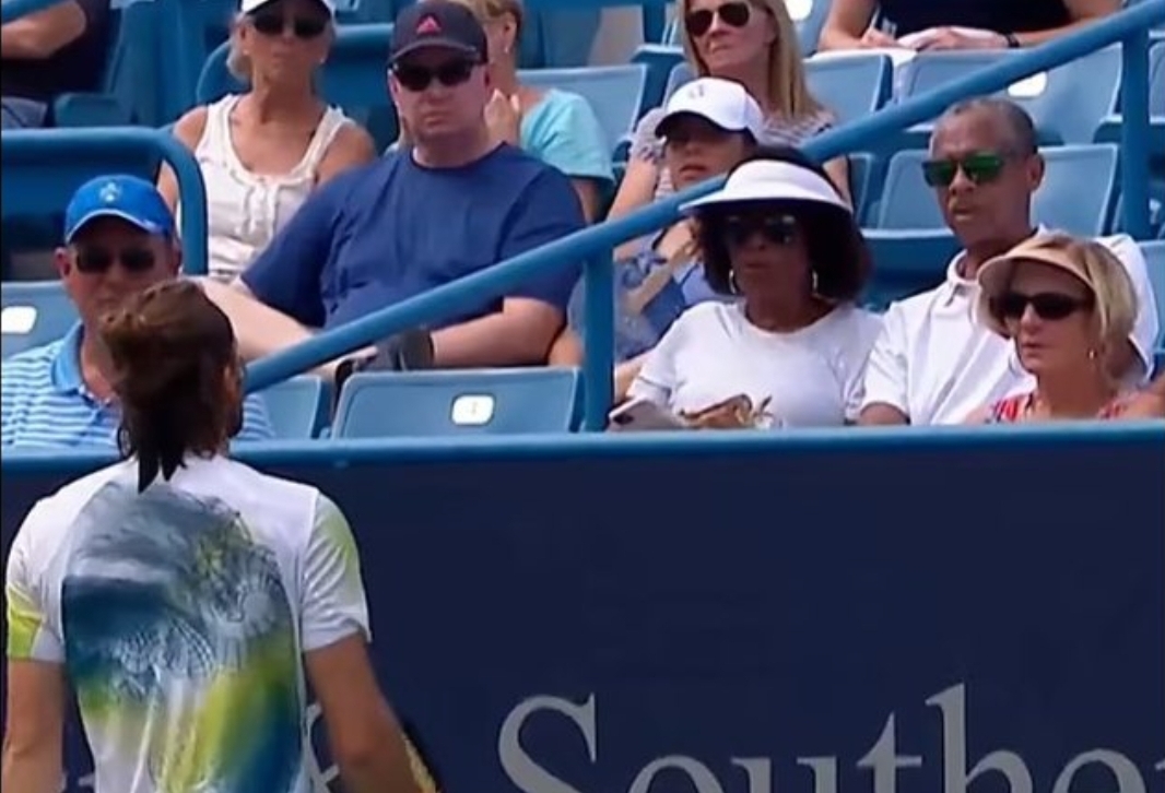 Tenisti në fillim kërkoi largimin e saj teksa e konsideronte një tifoze të rivalit të tij në lojë, por gruaja e mohoi këtë gjë dhe kërkoi falje për çka ndodhi.