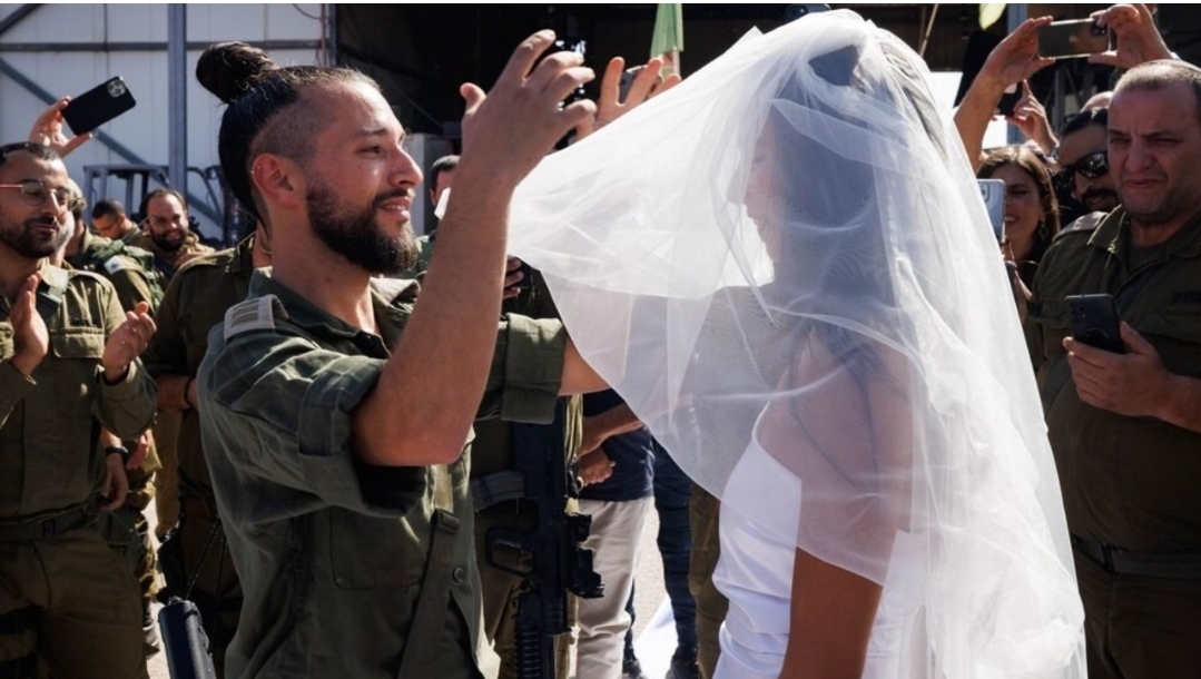 Megjithatë, ata nuk kanë pritur gjatë dhe kanë zhvilluar një ceremoni martesore aspak të zakonshme. Dasma e tyre u mbajt në një zonë grumbullimi ushtarak të Forcave të Izraelit dhe makina e tyre në fakt, ishte një tank. Së bashku me familjarët e tyre dhe ushtarët e tjerë, ata kurorëzuan dashurinë e tyre, edhe pse në kohë lufte.
