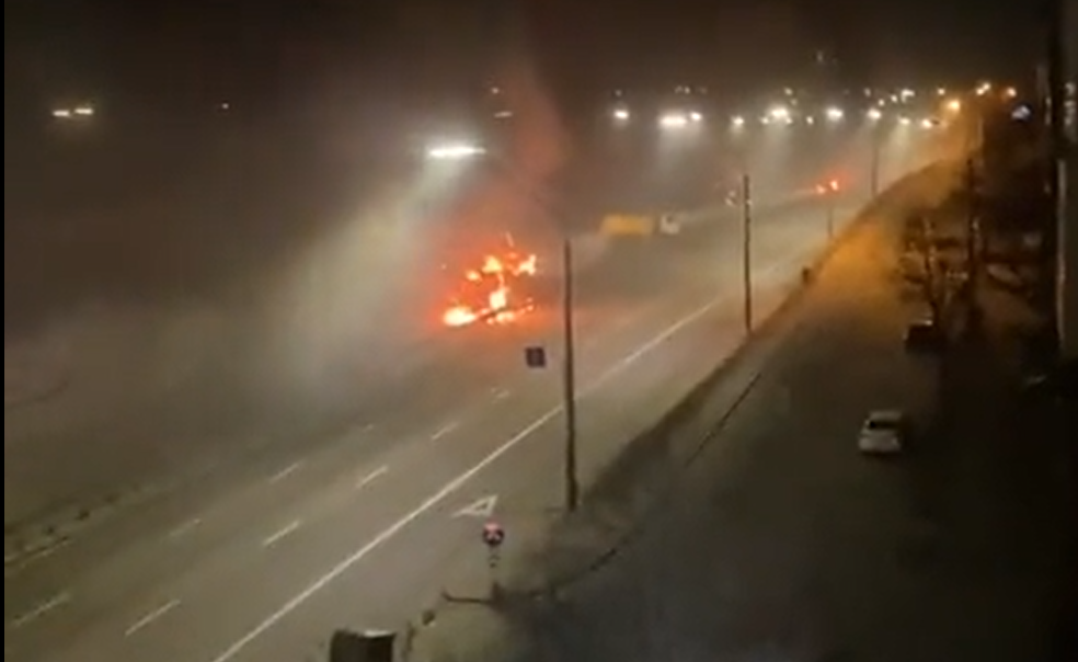 Një pjesë e autostradës Prospekt Peremohy afër qendrës së Kievit u shndërrua në një zonë lufte mbrëmë.