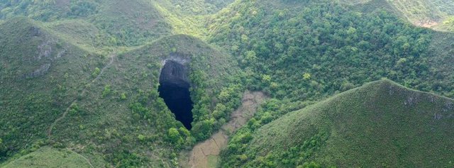 Në Leye të Guangxi Zhuang, gropa u zbulua nga disa zbulues shpellash, ku brenda gropës ata hasën në tri hyrje të shpellave brenda hapësirës me 306 metra lartësi dhe 150 metra gjerësi.
