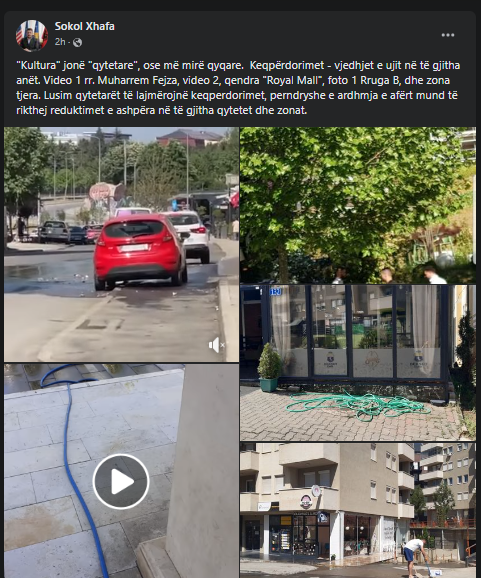 “‘Kultura’ jonë ‘qytetare’, ose më mirë qyqare. Keqpërdorimet – vjedhjet e ujit në të gjitha anët”, ka shkruar ai si përshkrim të pamjeve nga disa zona. “Lusim qytetarët të lajmërojnë keqpërdorimet, përndryshe e ardhmja e afërt mund të rikthejë reduktimet e ashpra në të gjitha qytetet dhe zonat”, ka shkruar Xhafa.