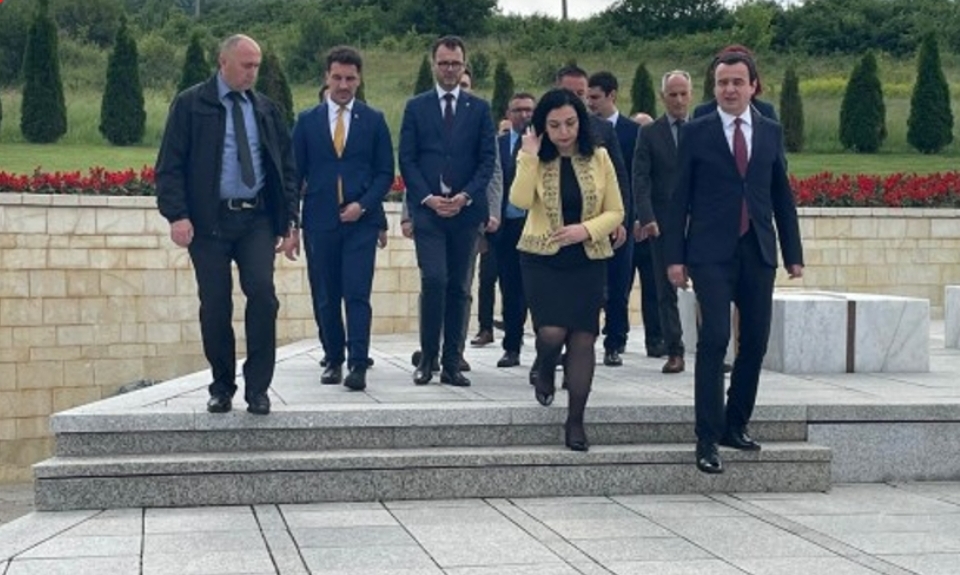 Presidentja e Republikës së Kosovës, Vjosa Osmani e shoqëruar nga kryeministri, Albin Kurti në Ditën e Çlirimit të vendit kanë bërë homazhe sot në Kompleksin Memorial “Adem Jashari”, në Prekaz.