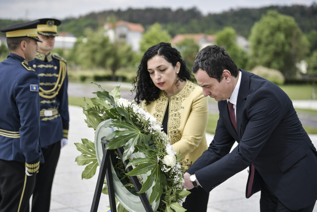 Presidentja e Kosovës, Vjosa Osmani bashkë me kryeministrin Albin Kurti në Ditën e Çlirimit të vendit kanë vazhduar me homazhe edhe në Kompleksin Memorial “Adem Jashari”, në Prekaz.