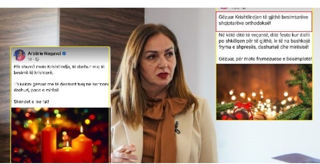 Një prej tyre që ja ka huqur me urimin është ministrja e Arsimit, Arbërie Nagavci, e cila në vend që të uronte besimtarët katolik për Krishtlindjet, ka uruar ata ortodoks, por që këta të fundit Krishtlindjet i festojnë më vonë, saktësisht më 7 janar, shkruan Reporteri.net.