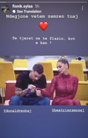 Në mesin e shumë komnteve, përkrahjeve dhe postimeve në rrjete sociale, si shenjë përkrahjeje, ishte edhe reagimi i burrit të Fjolla Morinës, Fisnik Syla.