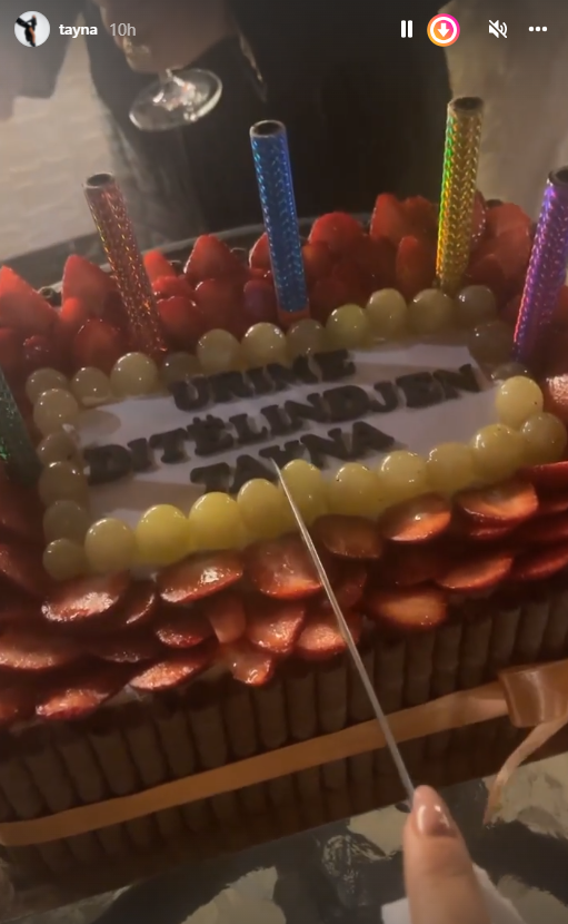 Ndërkohë, krijuesja e këngës “Taka” për natën e saj speciale është befasuar edhe me fishekzjarrë dhe një tortë.
