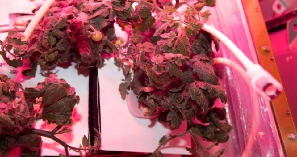 Veg-05 rriti domate në objektin Veggie të stacionit për të ekzaminuar efektet e dritës dhe cilësisë së plehrave në prodhimin e frutave, sigurinë mikrobike dhe vlerën ushqyese