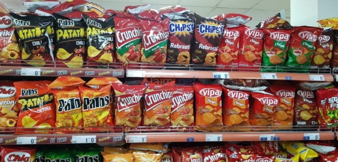 Kështu duken raftet e disa dyqaneve ushqimore në Kosovë, edhe pse me rregulla, produktet duhet ta kenë vendosur pranë flamurin e vendit prej nga vijnë.