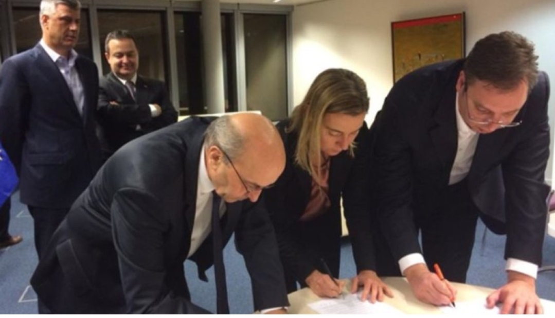 Marrëveshja për parimet e Asociacionit u nënshkrua nga Isa Mustafa, si kryeministër i Kosovës dhe Aleksandar Vuçiq, si kryeministër i Serbisë.
