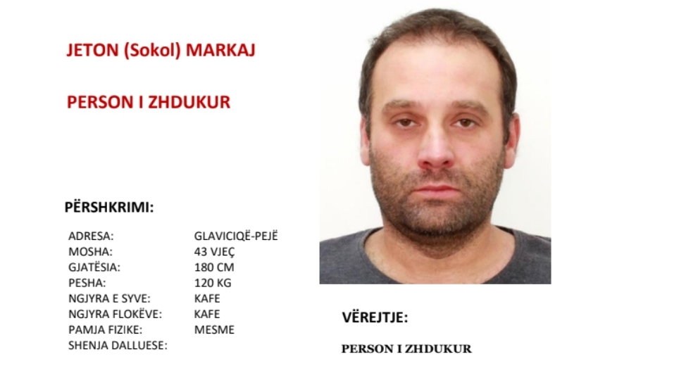 “Policia e Kosovës kërkon nga qytetarët e Republikës së Kosovës që kushdo që ka informacion për vendndodhjen e personit të zhdukur në foton e bashkangjitur, të lajmërojë Policinë e Kosovës apo të lajmërohet në stacionin më të afërt policor” thuhet në njoftimin e Policisë.