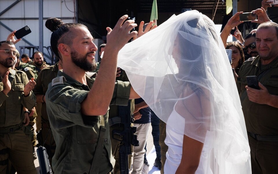 Megjithatë, ata nuk kanë pritur gjatë dhe kanë zhvilluar një ceremoni martesore aspak të zakonshme. Dasma e tyre u mbajt në një zonë grumbullimi ushtarak të Forcave të Izraelit dhe makina e tyre në fakt, ishte një tank. Së bashku me familjarët e tyre dhe ushtarët e tjerë, ata kurorëzuan dashurinë e tyre, edhe pse në kohë lufte.