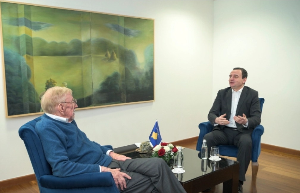 Kryeministri Albin Kurti, është takuar të dielën me ish-shefin e Misionit Verifikues të OSBE-së në Kosovë, William Walker, të cilin e ka falënderuar për kontributin gjatë luftës.