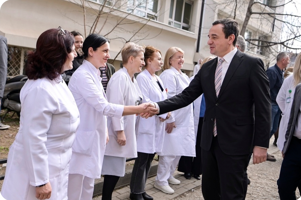 “Kryeministri i shoqëruar nga ministri Vitia, Drejtori i ShSKUK-së, Elvir Azizi, drejtori i QKUK-së, Osman Hajdaraj dhe Drejtori i Gjinekologjisë, Zef Ndrejaj, zhvilluan një takim me stafin e kësaj klinike, të cilët shprehen falënderime dhe mirënjohje për mbështetjen që vjen nga Qeveria përmes krijimit dhe përmirësimit të kushteve të punës, e cila për ta nënkupton edhe inkurajim e përkushtim më të lartë në ofrimin e shërbimeve më cilësore për pacientët”, thuhet në komunikatë.