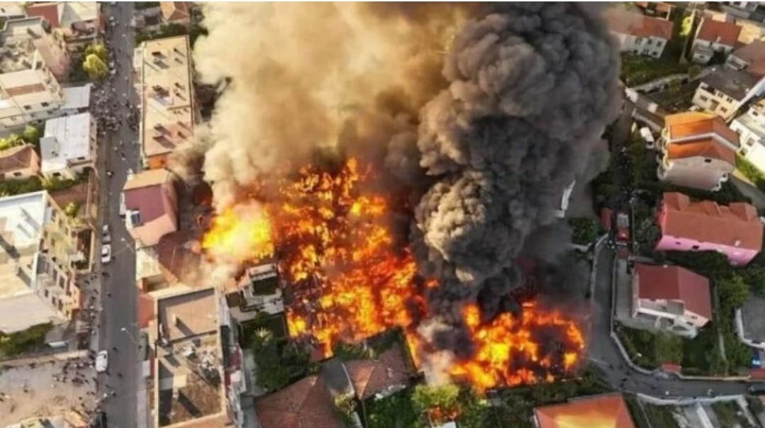 Një zjarr i përmasave të mëdha përfshiu tregun e rrobave të përdorura pasditen e djeshme rreth orës 18:55 në lagjen “Ndoc Mazi” në Shkodër.