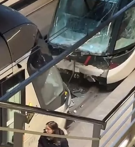 Një video nga një dëshmitar në rrjetet sociale tregon një skenë kaotike me dy tramvaje të dëmtuar rëndë në tunel, në stacion. Një nga tramvajet duket se ka dalë nga shinat për shkak të përplasjes. (A2 Televizion)