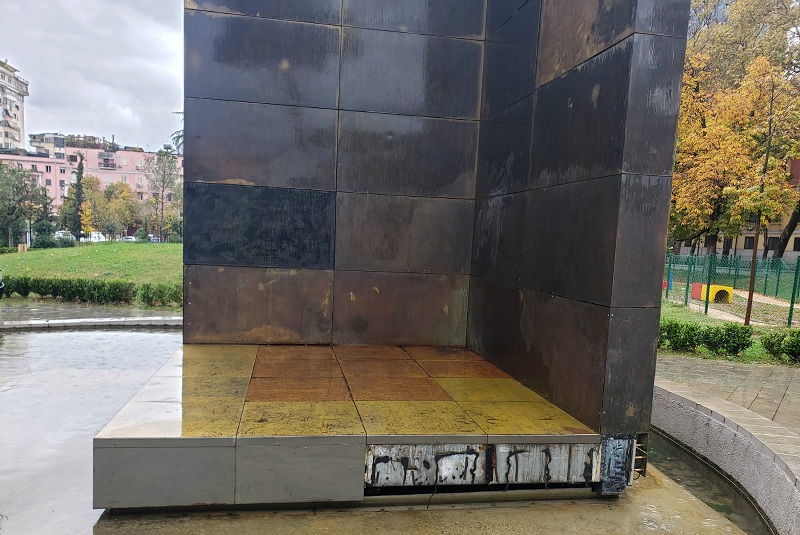Siç mund të shihni edhe nga fotot, një ditë para 28 nëntorit pllakat metalike të monumentit të Pavarësisë janë vjedhur për skrap.