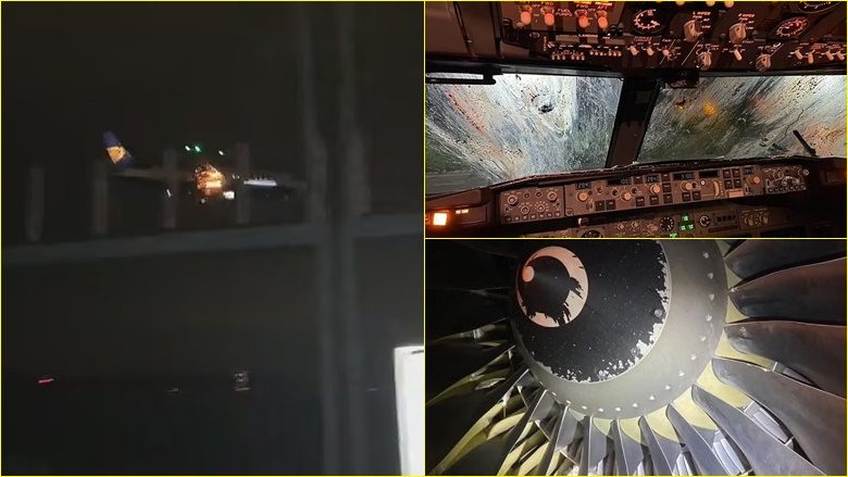 Si pasojë, njëri prej motorëve të tij nxori flakë dhe aeroplani është parë i mbuluar me gjak dhe pupla.