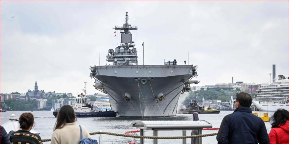 “Askush në Stokholm nuk mund të humbasë faktin që ekziston kjo anije e madhe amerikane këtu në qytetin tonë,” tha Micael Byden, komandanti suprem i Forcave të Armatosura Suedeze, duke qëndruar në kuvertën e anijes sulmuese amfibe.