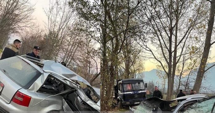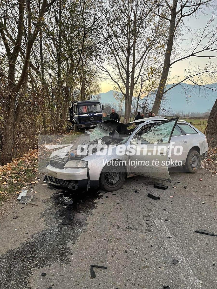 Sipas fotografive të publikuara, shihet se vetuar e aksidentuar është e ndarë në dysh nga përplasja që ka pasur me një kamion, mirëpo nuk dihet për gjendjen e të lënduarit.