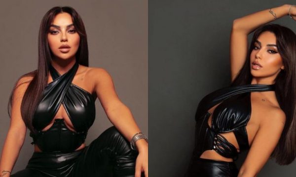 Me pantallona lëkure, bluzë me pretje të veçantë tek gjoksi dhe taka të larta, ajo dukej tejet tërheqëse.